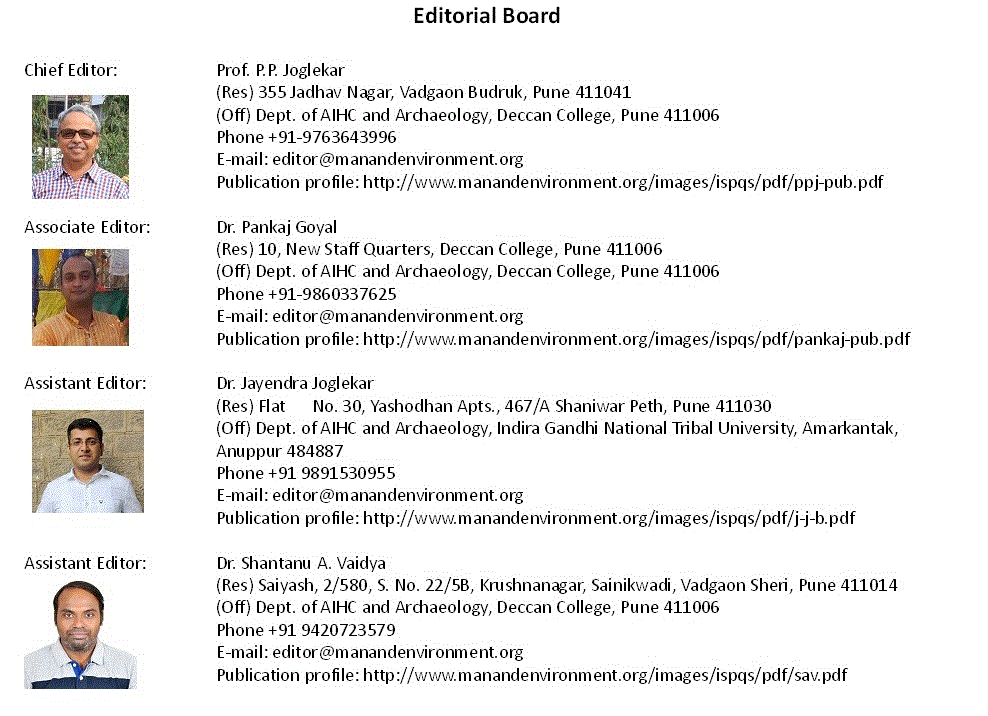 VIEW PUBLICATION PROFILE of Editor VIEW PUBLICATION PROFILE of Associate Editor VIEW PUBLICATION PROFILE of Assistant Editor1 VIEW PUBLICATION PROFILE of Assistant Editor2 Process of peer review and publication Guidelines for article submission The Indian Council of Historical Research (ICHR) and the Archaeological Survey of India (ASI) were supporting the publication of the journal through grants. However, both these organisations are not responsible for any content, material published and opinions expressed in the articles, book reviews, etc.